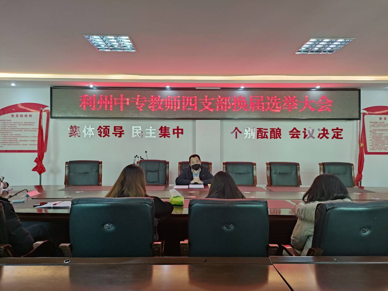 为进一步完善学校党支部架构并扎实推进学校党建工作,依据《中国共产党章程》和《中国共产党基层组织选举工作暂行条例》规定,经报学校党委同意,12月26日,利州中专教师第四党支部换届选举会议在行政楼四楼会议室顺利召开。会议由学校党委副书记蒋超同志主持。