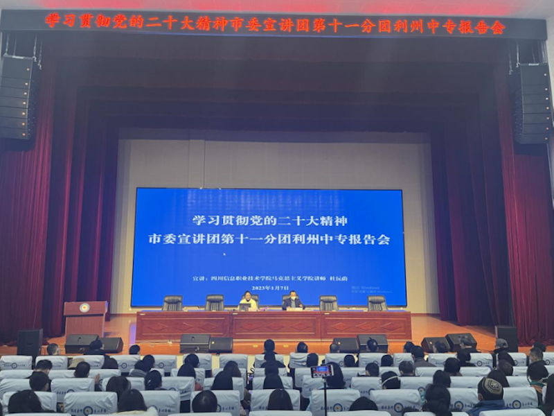 为深入学习贯彻党的二十大精神,切实把广大干部群众的思想和行动统一到会议精神上来。根据市委统一部署,1月7日上午市委宣讲团第十一分团、四川信息职业学院马克思主义学院讲师杜沅荫来到利州中专作党的二十大精神专题报告会。全校教职工参加学习,会议由学校党委副书记蒋超主持。