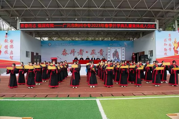 冠笄以礼承大志,奋斗青春勇担当。为进一步推动中华优秀传统文化融入三全育人工作体系,以文育人、以文化人,激励广大师生踔厉奋发、勇毅前行、团结奋斗,2023年2月23日,利州中专隆重举行2023年春季开学典礼暨集体成人仪式。学校领导与全体师生齐聚一堂,共同见证十八而志的蜕变,分享成人自立的喜悦。