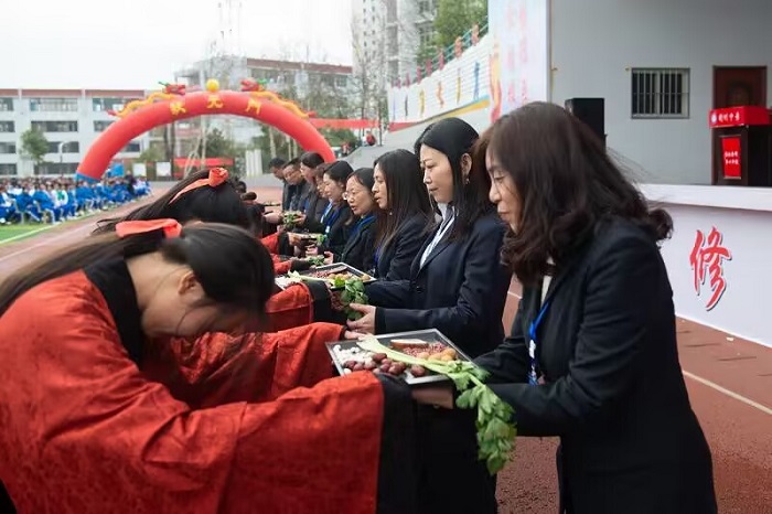 授业恩师,恩情难忘。学生代表向教师代表及学校领导恭呈六礼束,表达了学生对老师的感激之情。