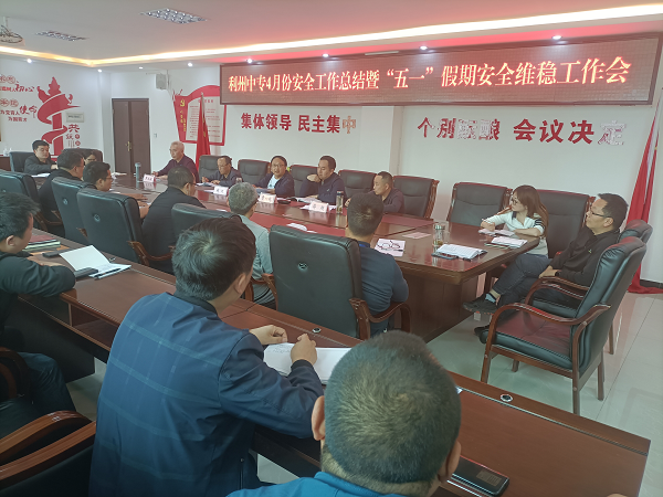 4月27日中午,利州中专召开了4月份安全工作总结暨五一假期安全维稳工作会议,学校在校班子成员及中层干部、“9+3”驻校干部、行政值周人员等参加了会议,会议由党委书记赵刚主持。