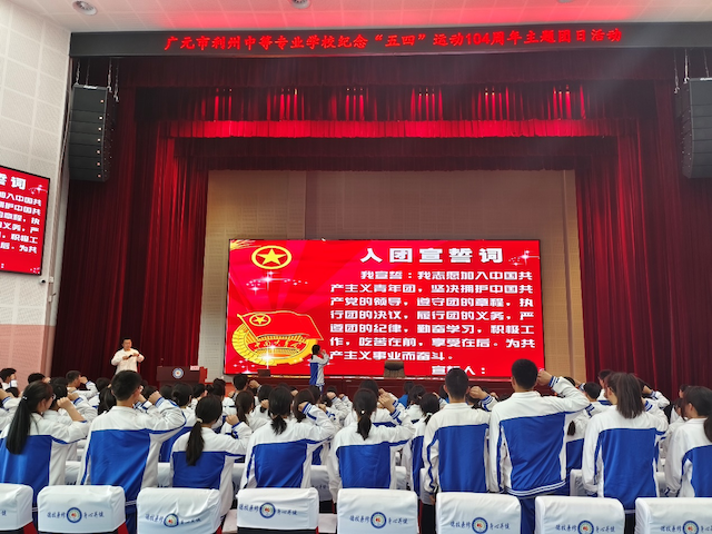 为深入学习贯彻党的二十大精神,团结带领广大青年传承五四精神,引导青年听党话、跟党走。5月4日下午,利州中专在演播大厅举行纪念“五四”运动104周年主题团日活动,全校团员参加此次活动。