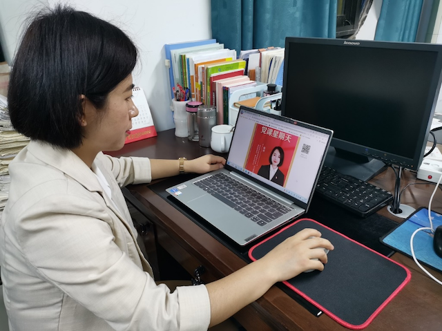 今天我收听了眉山市青神县青神中学第一党支部组织委员兼纪检委员、教科室副主任陈玲老师的党课《青春向党 强国有我》。