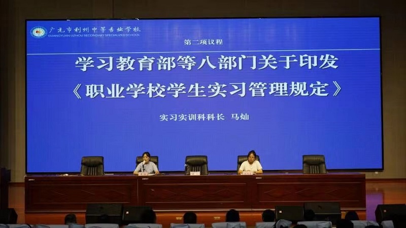马灿组织学习教育部八部门关于印发《职业学校学生实习管理规定》和《广元市利州中专毕业实习管理规定》《广元市利州中等专业学校校外实习生安全管理条例》等相关文件,同时宣读实习分配名单,组织学生现场扫码加入各实习医院微信、QQ管理群。要求实习学生务必高度重视专业岗位实习,依法依规完成实习项目。