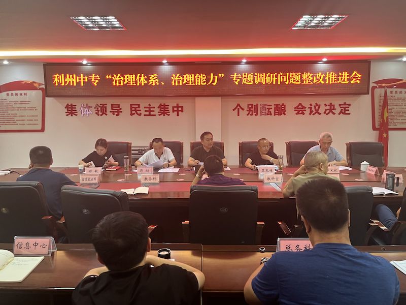为深入学习贯彻习近平总书记来川来广视察重要指示精神,落实中共中央办公厅印发的《关于在全党大兴调查研究的工作方案》相关要求和市委“1345”战略部署,结合市教育局印发的《2023年职业与成人教育工作要点》,进一步落实《利州中专“治理体系、治理能力”专题调研问题整改清单》具体任务,学校召开了专题推进会。会议由学校党委副书记、校长贾相成主持,班子成员及全体中层干部参加了会议。