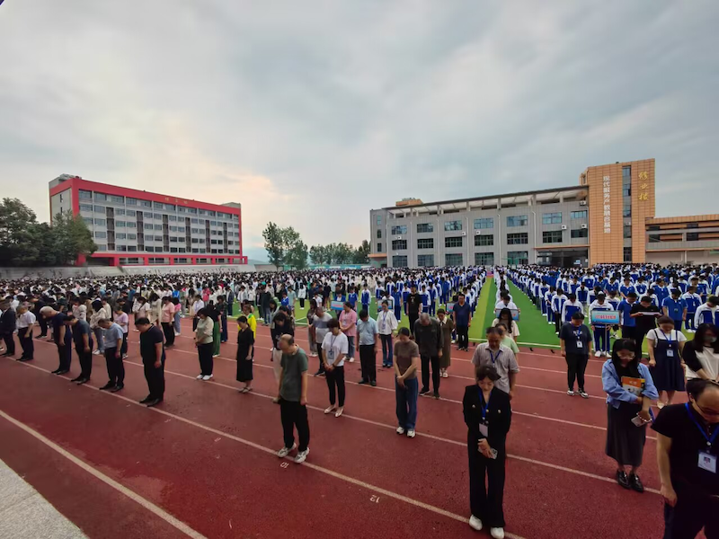 全体师生庄严肃立,为先烈默哀,向英雄致敬。