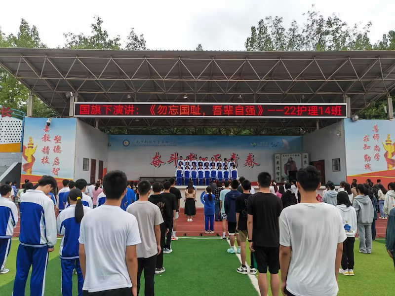 国旗下,22级护理14班全体同学做了“勿忘国耻,吾辈自强”主题演讲,向全体师生发出倡议:9月18日,是中国人永远不能忘记的日子,作为利专学子应牢记这段耻辱的历史,把它变成铠甲,化成力量,为中华之腾飞而不断努力,为实现中华民族的伟大复兴而奋斗。