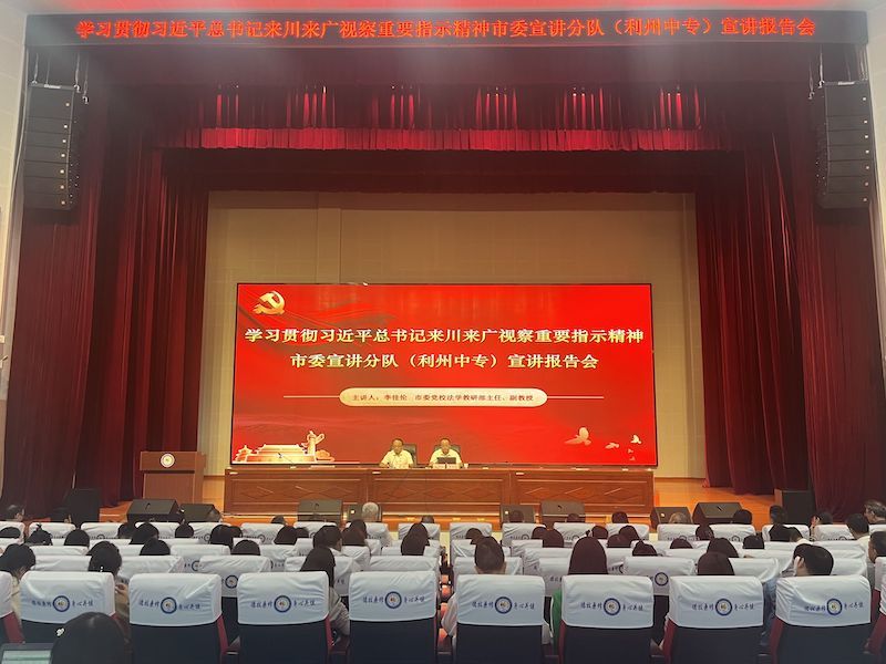 9月22日下午,市委第十分队(学校宣讲分队)成员、市委党校法学教研部主任、副教授李佳伦来到利州中专作《学习贯彻习近平总书记来川来广视察重要指示精神》专题报告会。全校教职工及100名学生代表参加学习,会议由学校党委书记赵刚主持。