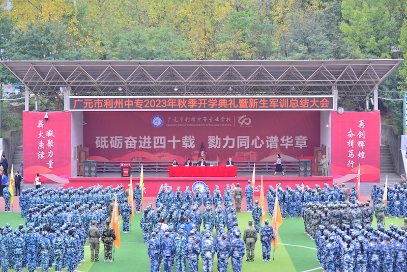 10月16日下午,利州中专2023年秋季开学典礼暨新生军训总结表彰大会在学校田径场“高燃”上演。