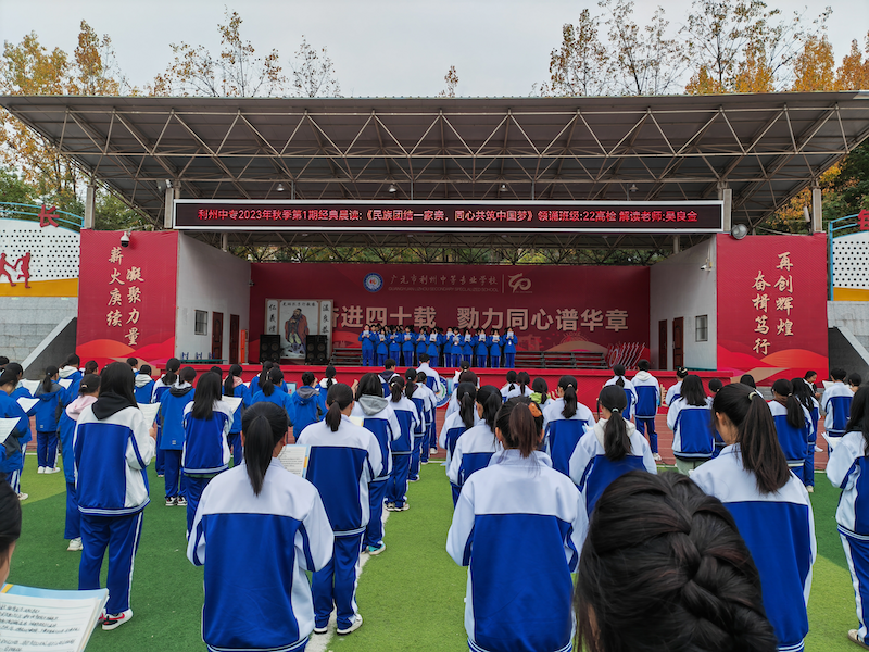 为营造良好的学习氛围、培养学生阅读习惯、促进学风建设,11月1日上午,利州中专举行了2023年秋季第一期主题为“民族团结一家亲,同心共筑中国梦”的经典晨读活动。