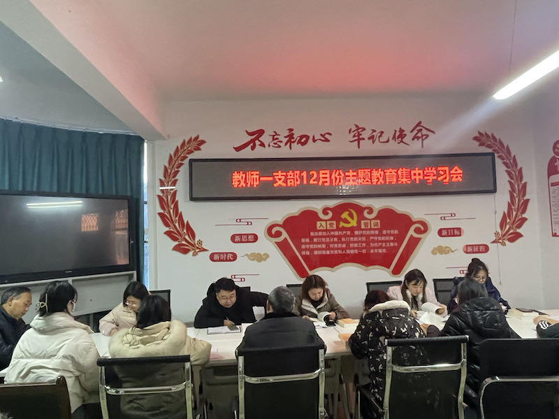 为学习贯彻习近平总书记对四川工作系列重要指示批示精神,聚焦检验学习贯彻习近平新时代中国特色社会主义思想的实际成效,贯彻省委十二届四次全会、市委八届七次全会精神,12月27日,利州中专教师一支部全体党员在修德楼东3-4召开了12月份主题教育集中学习会。会议由支部书记赵星圻主持,教科室主任彭升齐列席。