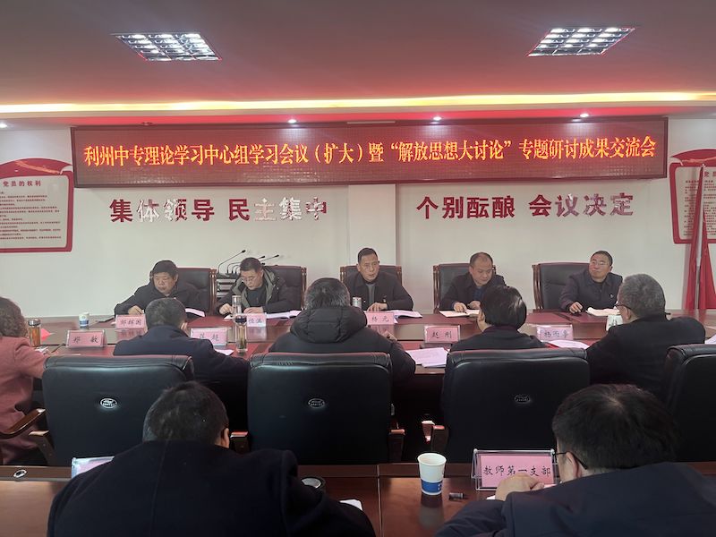 为深入学习领会习近平总书记关于意识形态工作,发扬斗争精神、应对风险挑战,全面从严治党、推进自我革命的重要论述,同时对“牢记嘱托走在前、感恩奋进勇争先”解放思想大讨论进行成果总结,1月9日,利州中专召开理论学习中心组学习(扩大)会议暨“解放思想大讨论”专题研讨成果交流会。学校党委理论学习中心组成员参加会议,各支部书记列席会议,党委书记赵刚主持会议并讲话。会议邀请了市委教育工委委员、市教育局党组成员、副局长杨元等旁听组一行列席会议并指导。
