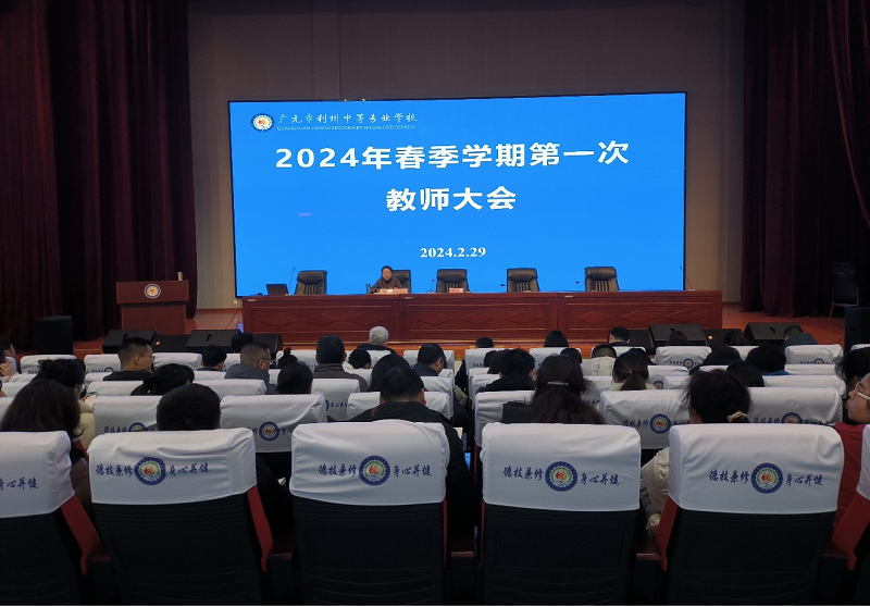 祥龙迎春送祝福,扬帆远航谱新篇。为了进一步贯彻学校发展的总体思路,锚定新学期发展目标,确保新学期各项工作有序开展,根据学校党委安排,2月29日,学校召开了2024年春季学期第一次教师大会。会议由学校党委委员、工会主席郑敏主持,全体教师参加了会议。