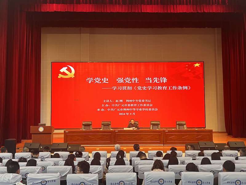 3月20日下午,利州中专召开以“学党史 强党性 当先锋”为主题的党史学习教育会议。党委书记赵刚组织全体教职工集中学习《党史学习教育工作条例》(下面简称《条例》)。?