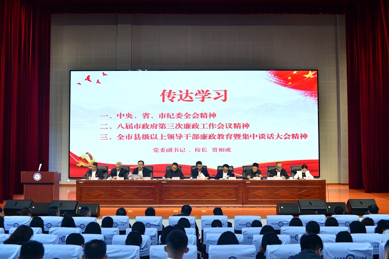 学校党委副书记、校长贾相成组织传达学习了中央、省、市纪委全会精神和全市县级以上领导干部廉政教育暨集中谈话大会精神、八届市政府第三次廉政工作会议精神。