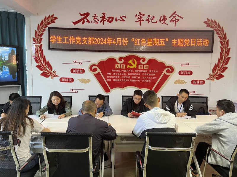 4月26日上午,利州中专学生工作支部开展2024年4月份“红色星期五”主题党日活动,活动由支部书记王兴兵主持,支部全体党员参加了活动。