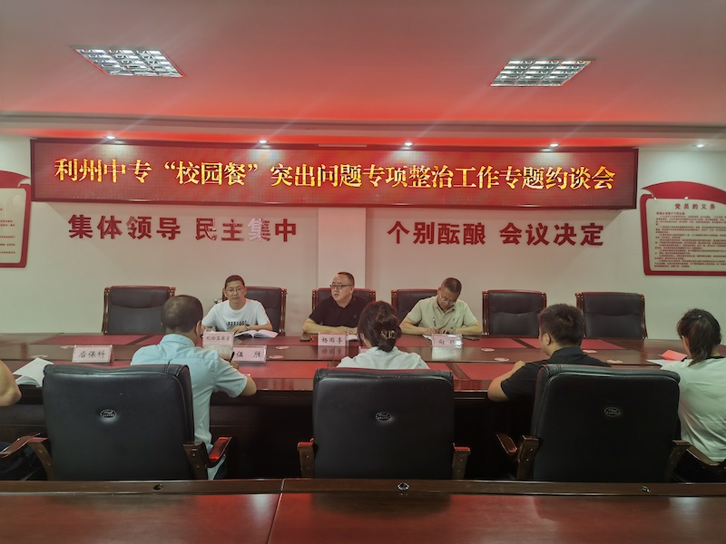 为深入推进“校园餐”突出问题专项整治,切实把校园餐做成廉洁餐、放心餐、良心餐、满意餐。7月9日,驻利州中专纪检监察组召开专项整治约谈会,对学校后??啤⑹程贸邪笠捣ㄈ舜?、管理团队进行约谈。市纪委监委驻利州中专纪检监察组组长、党委委员、纪委书记杨雨亭,党委委员、副校长向珏等参加会议。
