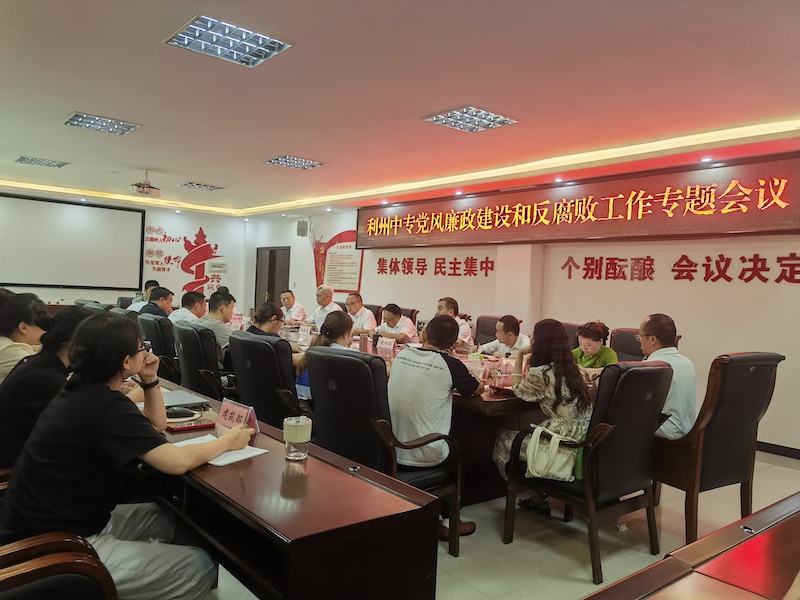 7月13日,利州中专党委召开党风廉政建设和反腐败工作专题会议。班子成员、中层干部及驻校纪检监察组干部参加会议。市纪委监委驻利州中专纪检监察组组长、党委委员、纪委书记杨雨亭主持会议。