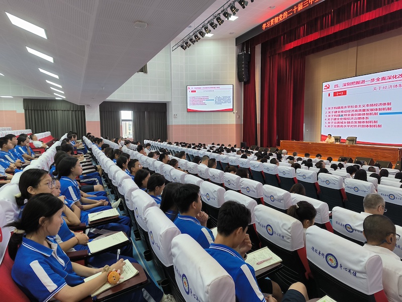 学校领导班子成员、中层干部、全体教职员工、部分学生代表聆听报告会。