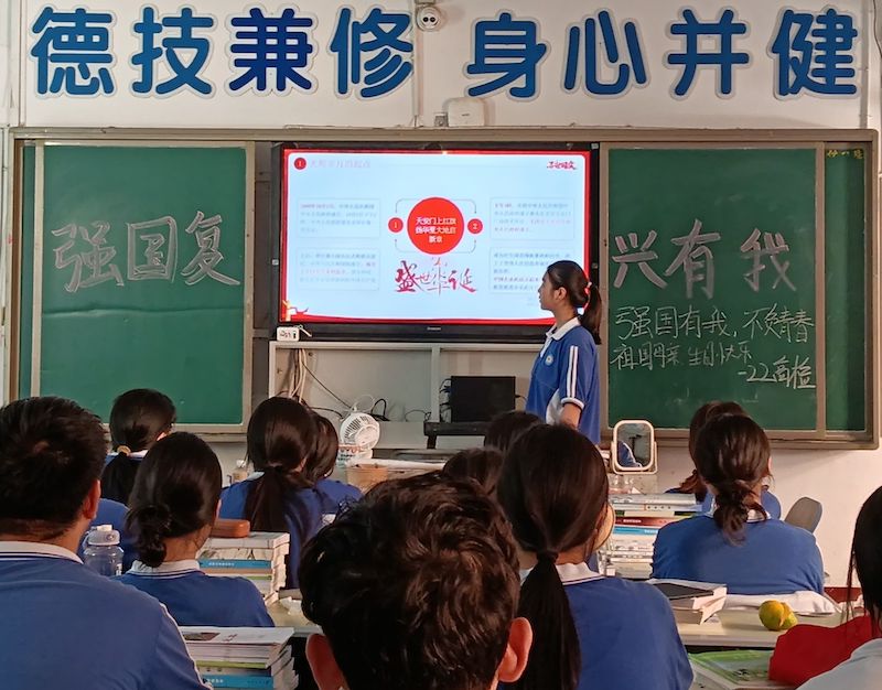 主题班会,共话辉煌历程。全校各班精心组织了以“庆祝新中国成立75周年”为主题的班会活动。班会上,同学们通过观看历史影像、讲述英雄故事、朗诵爱国诗歌等方式,回顾了祖国75年来的辉煌历程。大家深刻感受到了祖国的强大和繁荣,激发了强烈的民族自豪感和爱国热情。在交流互动环节,同学们纷纷表示要努力学习,为祖国的未来贡献自己的力量。