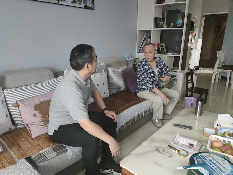 贾相成一行带着慰问金来到退休老党员家中,与他们促膝交谈,详细询问他们的身体状况和生活情况。老党员们虽已离开工作岗位多年,但他们始终心系学校发展,对学校领导的关心表示衷心感谢。