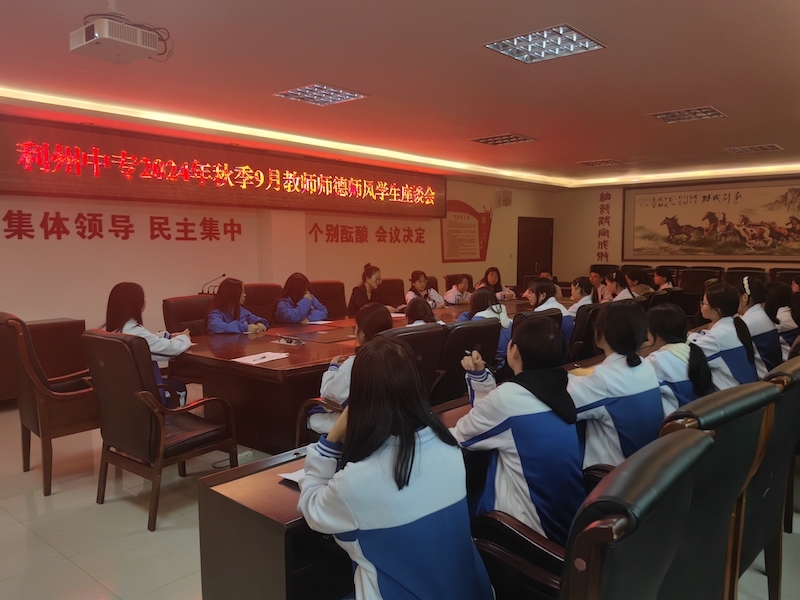 为深入学习贯彻习近平总书记关于教育的重要论述,大力弘扬和践行教育家精神,准确把握教育教学工作情况,进一步加强师德师风建设,10月11日,学校在修正楼四楼会议室组织召开本学期第一次师德师风建设学生座谈会,会议由教务科李文丽老师主持。