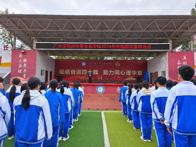 2024年10月16日,利州中专与广元市中心血站联合开展“献血车进校园”无偿献血活动?;疃贾?,校团委开展了主题宣传活动,向全校师生发起倡议:在个人身体健康条件允许的情况下,积极加入无偿献血队伍,勇敢的伸出臂膀,捐献可以再生的血液,挽救不可重来的生命!