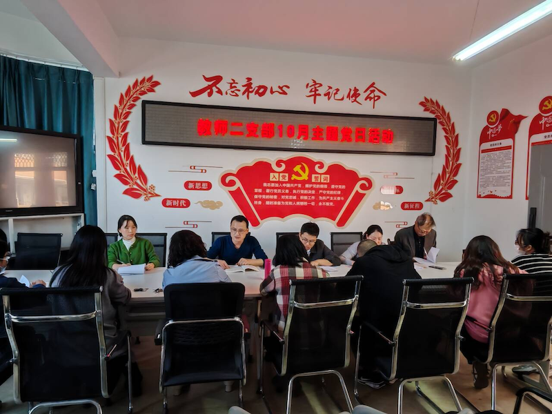 10月25日,利州中专教师二支部在教学楼东3-4开展10月主题党日活动,会议由支部书记张仲舒同志主持,支部全体党员参加会议。
