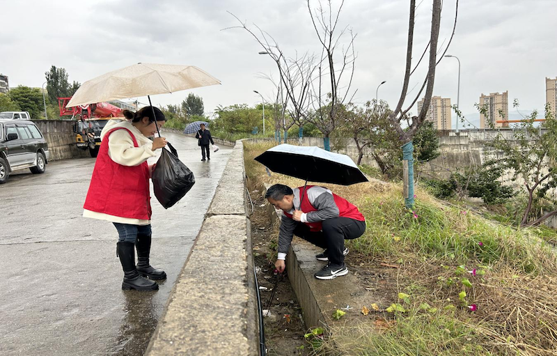 虽然下着小雨,但是支部党员们激情不减,干劲十足。大家手持火钳、垃圾袋在金矿小区及周边区域仔细搜寻、清理隐藏在沟渠里、草坪(藤蔓)中、卫生死角(缝隙)中的塑料袋(盒)、烟头、废弃纸(瓶)等白色垃圾,用自己的行动为美化小区及周边环境贡献微薄之力,充分展现了大家不怕脏、不怕苦、不怕累的志愿服务精神。为进一步弘扬中华民族勤俭节约的传统美德,倡导社区居民养成爱惜粮食,文明用餐的好习惯、党员们还纷纷化身为制止餐饮浪费、倡导文明用餐“宣传员”,向社区商家店铺、过往居民发放宣传资料,号召居民养成“文明用餐、节约用餐、理性消费、珍惜粮食、杜绝浪费”的好习惯,用实际行动积极投身“坚决制止餐饮浪费”行动。