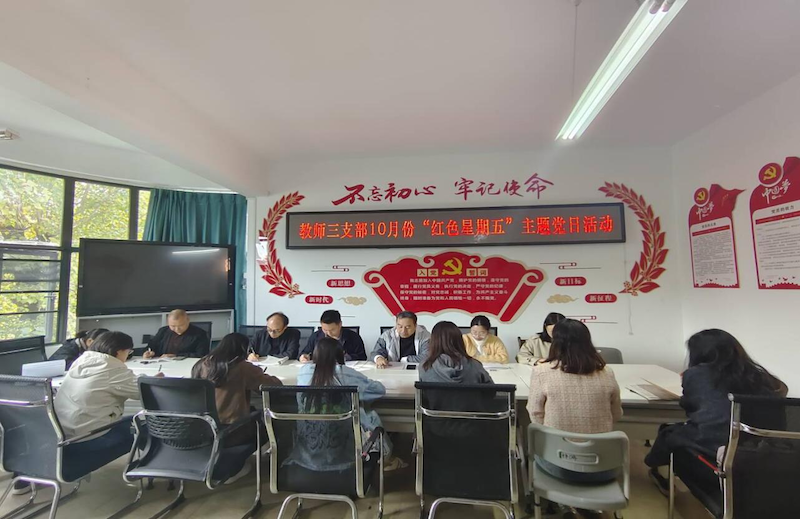 10月25日,教师三支部在教学楼东3-4会议室开展10月份“红色星期五”主题党日活动,支部全体党员参加会议,会议由支部书记唐家鹏同志主持。