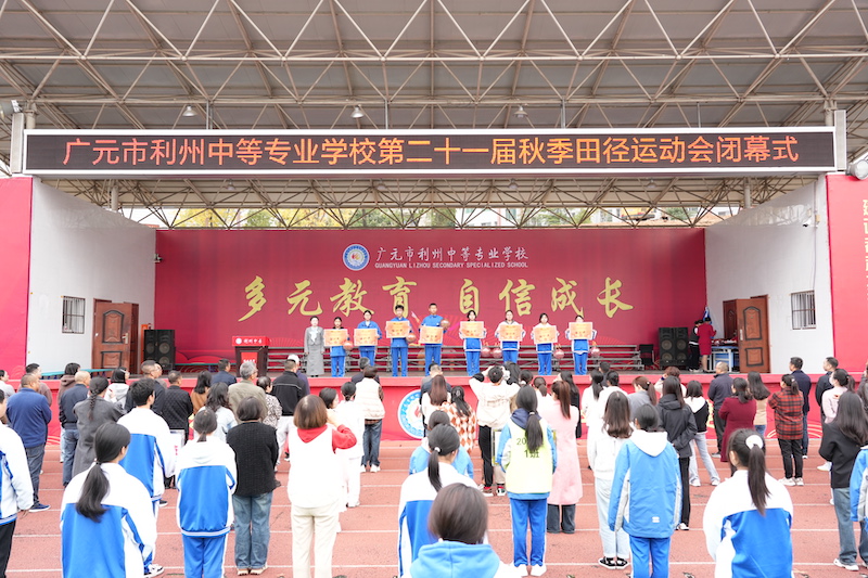 11月4日,利州中专第二十一届秋季田径运动会顺利闭幕,学校党委书记赵刚,党委副书记、校长贾相成及党政班子成员出席了闭幕式。