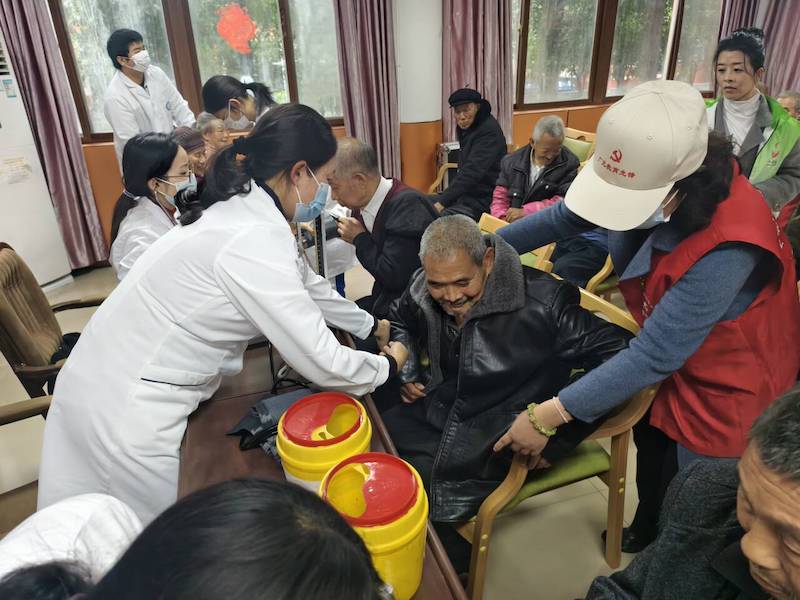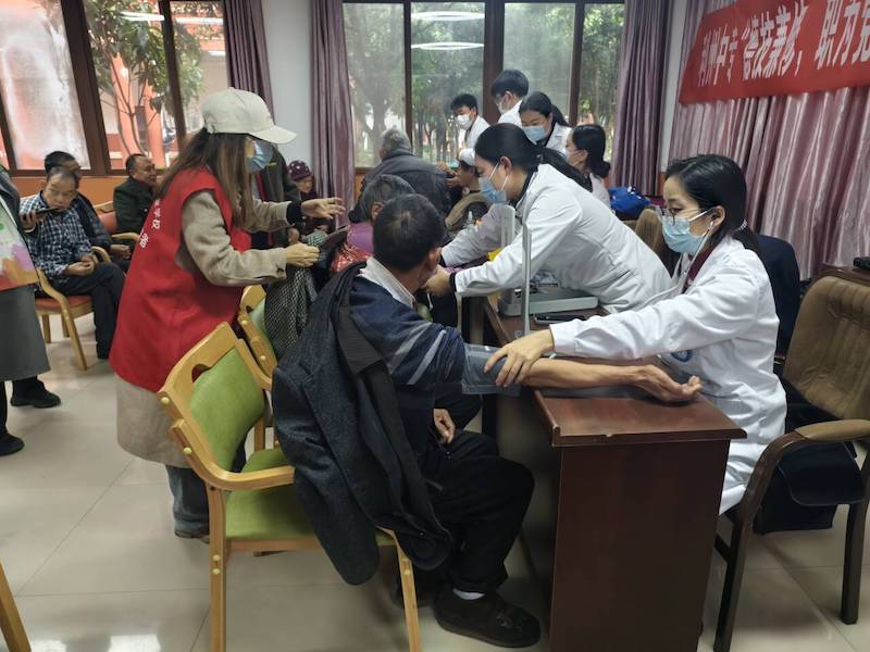 教师二支部是以医卫专业为主的党员教师组成,在这次志愿服务活动中,他们以身作则,与团员志愿者携手合作。党员教师为老人们测量血压、血糖,心肺听诊等。中医康复专业的同学们也学有所用,为老人们进行穴位按摩。志愿者们还陪伴这里的老人聊天、散步,开展文艺表演,打扫卫生等,不仅展现出团结协作、热情奉献的精神,更传递出对老人们的尊重和关爱。
