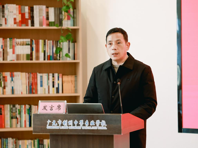仪式最后,广元市委教育工委委员、广元市教育局党组成员、副局长杨元为启动仪式致辞。他对工作室的成立和启动表示了热烈祝贺,深刻阐释了卓越校长在教育事业中的引领作用。杨局长在讲话中提出三点期望:一是要把握机遇,勇担使命。赵刚同志要持续做好示范引领,充分发挥卓越校长工作室辐射引领作用,全面加强教师队伍建设,提升学校关键办学能力,为推动四川教育事业高质量发展贡献力量;二是要聚焦核心,共谋发展。工作室要结合实际科学制定工作室发展规划;要助力工作室成员专业化成长,制定成员周期培养目标和工作室年度工作计划;要建立“一室领航、多校同进、区域提质”的发展新样态,助力成员所在学校问题破解,推动区域内校长和学校的共同发展;三是要激发活力,示范引领。工作室要以高水平的学术活动激发教师队伍专业成长内生动力、以高水平学术成果提升工作室品牌效应、以高质量的发展印证工作室成效,积极开展与各界合作,为实现高质量发展提供坚实人才支撑,推动区域内职业教育优质、特色、多样发展。