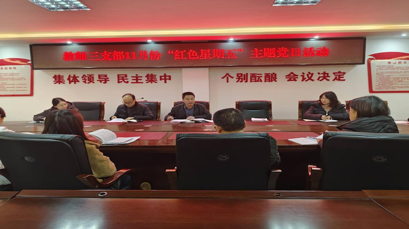 为深入学习贯彻党的二十届三中全会精神,11月29日,教师三支部在行政楼会议室开展11月份“红色星期五”主题党日活动,支部全体党员参加会议,会议由支部书记唐家鹏同志主持。