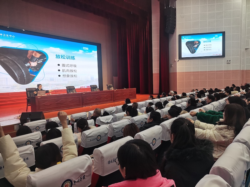 讲座上,冉医生围绕教师职业压力、学生心理问题应对以及教师自我心理调适等要点展开深入讲解。她分析了教师面临的工作、家庭和社会压力以及对个人身心的影响,并结合实际案例,分享了情绪管理、时间管理和沟通技巧,特别强调了教师自我心理调适的重要性,现场演示了深呼吸、肌肉放松和正念冥想等放松技巧,并引导教职工进行实践。针对学生心理问题,冉医生强调了教师识别学生焦虑、抑郁和社交障碍的重要性,倡导教师根据学生的个体差异实施个性化教学,以支持学生的全面发展。