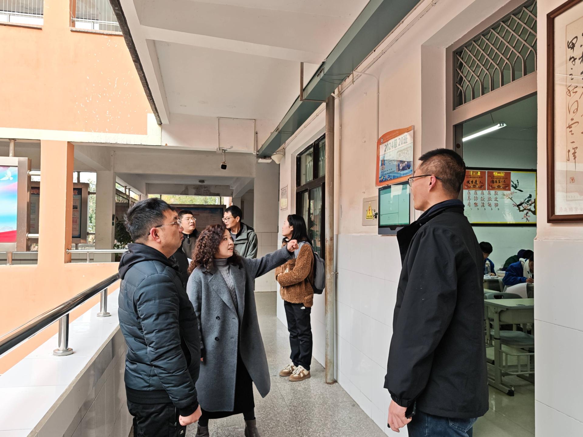 ? ? ? 互学互鉴、同道相益。与会领导先后参观学校门禁系统、教学楼电子班牌、宿舍楼人脸考勤系统、食堂、超市人脸消费系统,围绕信息化设备建设、使用情况与部门负责人进行深入沟通。