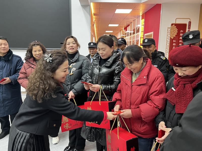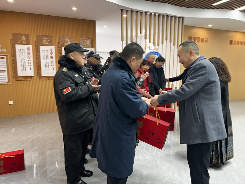 ? ? ? ? “在除夕这个团圆的时刻,你们依然坚守在这里,守护着校园的安全,学校感谢你们!祝你们新春快乐、身体健康、阖家幸福!” 领导们对值班人员在寒假和春节期间为学校正常运转、安全稳定所做出的贡献表示感谢,并代表学校为他们送上了慰问品。同时,希望值班值守人员认真履职尽责,强化安全意识,加强巡逻,切实做好校园安全工作,确保寒假期间学校各项工作的平稳运转和校园的安全稳定。