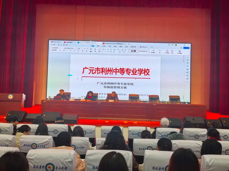 ?会上,教务科科长赵星圻对新学期教育教学工作进行了统筹安排,并详细解读了《广元市利州中等专业学校年级组管理方案》。该方案以习近平新时代中国特色社会主义思想为指导,秉持 “多元教育、自信成长” 的教育理念,确立学生成才、教师成长、学校发展的管理目标,坚持以生为本、德育为先、科学规范、协作共赢的管理原则。年级组作为学校管理基层枢纽,将在行政科室的监督指导下,根据学生的成长规律和不同年级的特点,全面负责各年级的教育教学工作。这一方案的实施,标志着学校管理模式的创新升级,为教学质量提升奠定坚实基础。