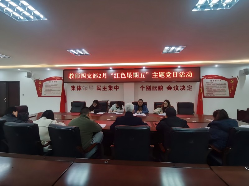 2月28日,教师四支部按照学校党委学习习近平总书记《论教育》的部署要求,组织开展“红色星期五”主题党日活动。支部书记唐钧主持本次活动。
