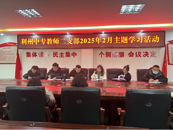 2月28日,利州中专教师二支部在行政楼四楼召开2月主题党日活动,会议由支部书记张仲舒主持,支部全体党员参加会议。
