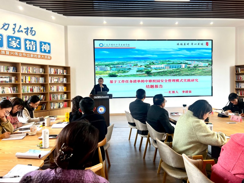 紧接着,会议进入结题报告环节。李清泉老师代表课题组就《基于工作任务清单的中职校园安全管理模式实践研究》进行了结题汇报,他总结了课题研究的主要成果和经验,并展望了未来校园安全管理工作的新方向。
