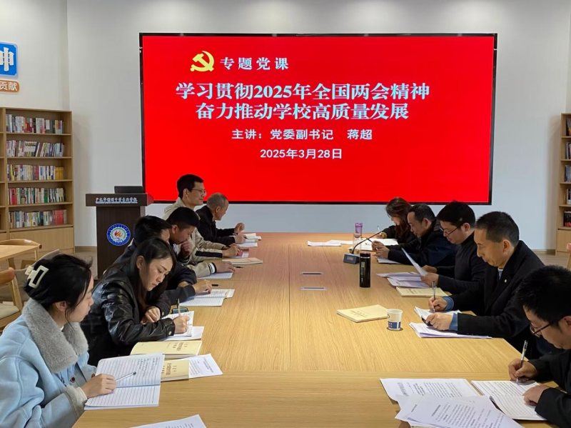 学校党委副书记蒋超以“学习贯彻全国两会精神,奋力推进学校高质量发展”为题,围绕聚焦教育事业发展、当前教育面临的挑战与问题、党员先锋模范作用的发挥、以两会精神为引领推动学校德育安全工作高质量发展等内容为全体党员讲授了一堂专题党课。