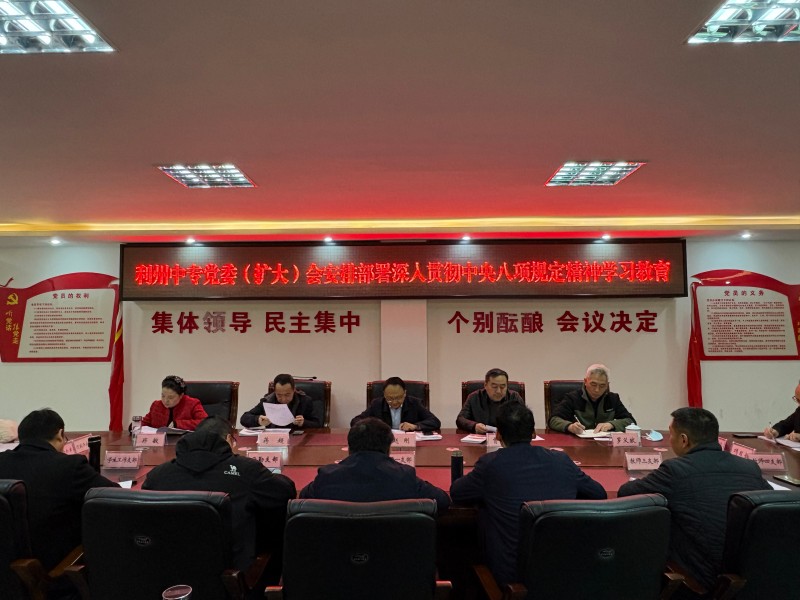 赵刚要求,一是将本次深入贯彻中央八项规定精神学习教育作为巩固深化主题教育和党纪学习教育成果、纵深推进全面从严治党的重要活动,确保不折不扣落实中央精神,各项举措彰显利州中专特色、力求实效。二是坚持原原本本学习习近平总书记关于加强党的作风建设的重要论述,把强化党的创新理论武装作为开展学习教育和基层党建工作的首要任务。三是坚持将学习教育与学校党建工作深度融合,结合学校“多元赋能 三信筑梦”党建品牌建设和“六强”党支部建设工程,紧紧依靠党的组织体系开展学习教育,重点加强各支部党员引领作用的发挥。四是坚持分类指导,在学习教育的重点内容、目标要求、方法形式等方面兼顾领导干部、党员同志、普通教职工以及退休党员等不同群体,着力加强党委领导班子建设,以上率下;五是坚持推动学查改贯通融合,结合学校工作、贴近师生实际,统筹推进学习研讨、查摆问题、集中整治、开门教育,持续整治群众身边不正之风和腐败问题,专项整治“校园餐”“校服”“教辅资料”等突出问题,深入推进清廉学校建设,确保把整改落实的成效转化为扎实推进学校中心工作和全年重点任务的有力行动。