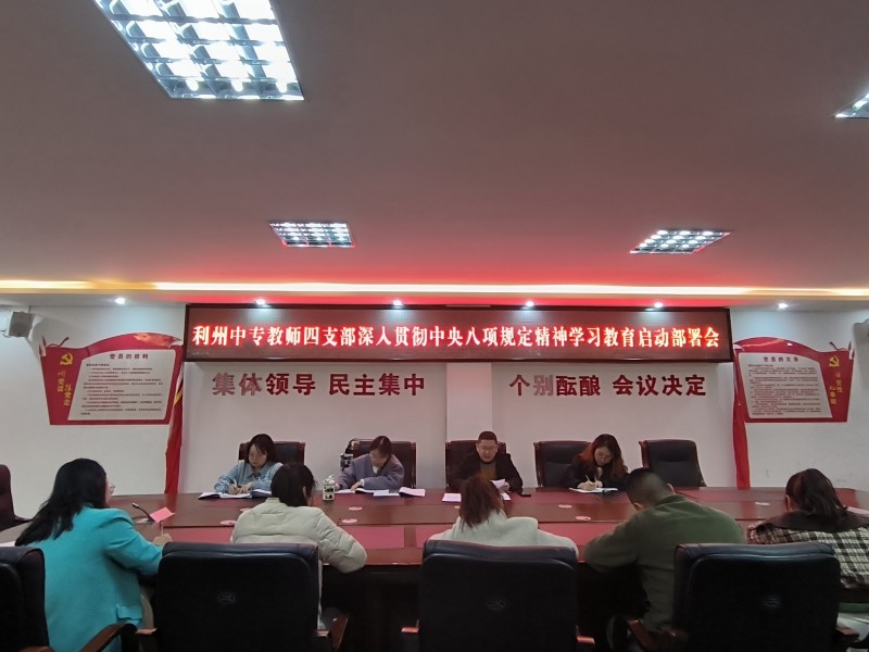 此次启动部署会议的召开,标志着教师四支部深入贯彻中央八项规定精神学习教育正式拉开帷幕。在未来的工作中,教师四支部全体党员将以此次学习教育为契机,不断加强自身作风建设,以更加饱满的热情、更加扎实的工作,为利州中专的发展贡献力量,为培养德智体美劳全面发展的社会主义建设者和接班人而努力奋斗。