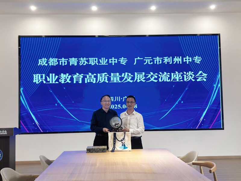 交流活动最后,张涛书记代表成都市青苏职业中专学校为赵刚同志送上了由学生精心制作的文创作品。这些文创作品生动展现了青苏职专学生的专业技能与创意才华,成为两校友谊的珍贵见证。