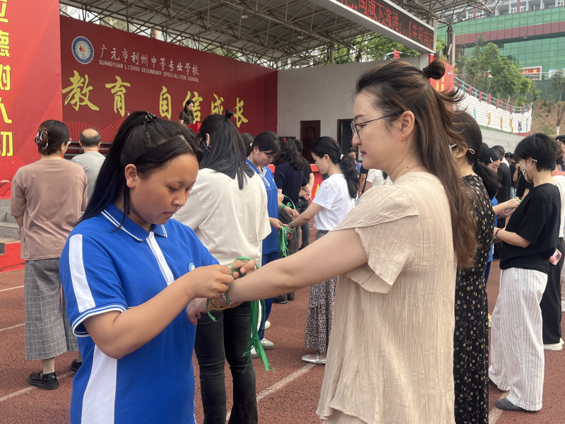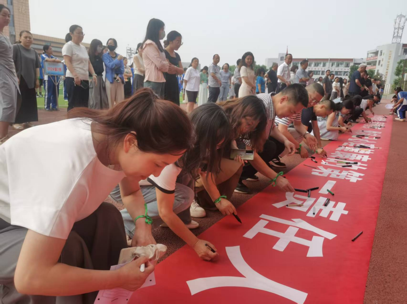 心理社团成员现场为教职工佩戴绿丝带,象征“心理防护”的绿色丝带在校园中流动,传递出学校对师生心理健康的重视与关怀。随后举行的“心灵契约”签名仪式上,师生们在横幅上郑重签下姓名,共同承诺以积极行动守护心灵健康,构建互助互爱的校园心理支持网络。