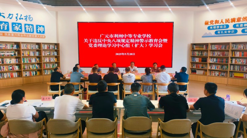 5月28日,利州中专召开关于违反中央八项规定精神警示教育会暨党委理论学习中心组(扩大)学习会。校党委书记赵刚主持并作总结讲话。