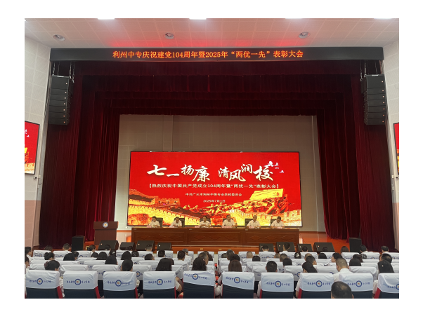 为庆祝中国共产党成立104周年,深入贯彻中央八项规定精神学习教育,持续推进“清廉学校”建设。7月1日利州中专隆重举行“‘七一’扬廉 清风润校”庆祝中国共产党成立104周年暨“两优一先”表彰大会。全体党员、教职员工参加大会,学校党委副书记、校长贾相成主持会议。