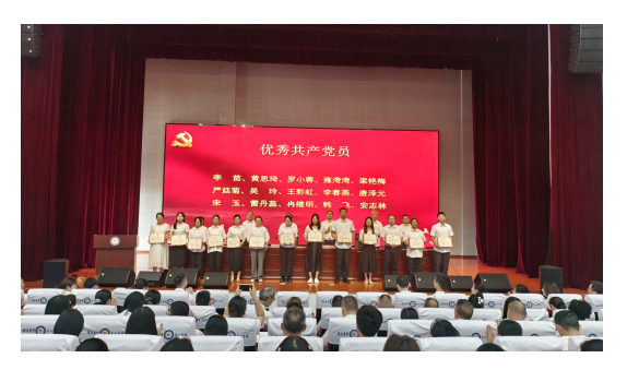 大会在《没有共产党就没有新中国》的歌声中拉开序幕。会上,举行了新党员入党仪式,全体党员重温入党誓词,宣读了学校党委关于表彰“两优一先”文件,并对获奖个人和组织进行表彰,优秀党员、优秀党务工作者、先进基层党组织代表发言。